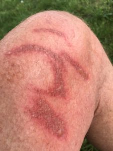 Above: jellyfish sting off Cornwall, UK, Jan 2016. Photo: Jim Rose. It's his leg, too. He said it really hurt...